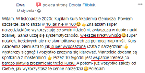 Wcale nie musisz wierzyć mi na słowo, zobacz opinie zadowolonych uczestników Akademii Geniusza, którzy zmienili swoje życie: