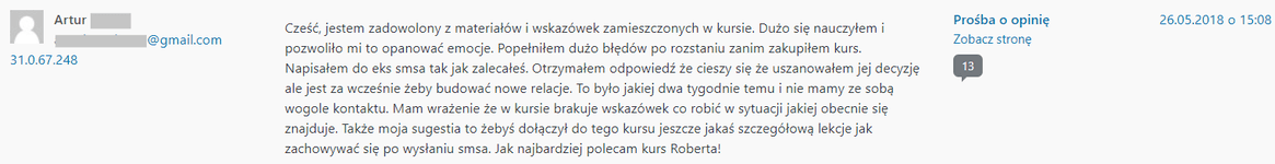 To świetnie, bo to znaczy, że nie starasz się o kretyna, tylko o inteligentną osobę. Odzyskanie Ex nie zakłada żadnych durnych akcji, typu jedna róża codziennie przez 30 dni – potrzebne będzie dogłębne zrozumienie powodów waszego rozstania, prawdziwa praca nad obiekcjami i emocjami Ex oraz kilka innych rzeczy, które nie są żadnymi sztuczkami.